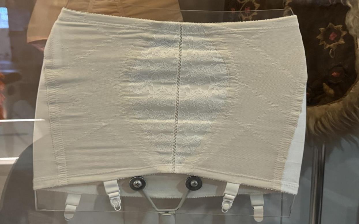 下图是玛莎百货(Marks&Spencer)的腰带,20世纪60年代,新技术允许对内衣形状的方式进行实验。卷带束腰没有系扣,这样设计是为了更容易穿衣服,而紧身胸衣则有舒适的弹性嵌板。